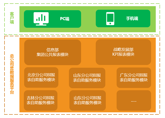 為解決以上問題中國人壽財險與億信華辰合作,利用億信BI快速滿足總公司與各省分公司的數據統計分析需求,通過完善的培訓體系,幫助中國人壽財險建立自己的報表實施團隊,由總公司與各省分公司信息部門人員獨立完成報表的制作,既能減輕總公司信息部門工作壓力與負擔,同時能夠讓各省分公司快速整合業務與技術獨立完成數據分析需求的實現縮短需求溝通時間,并通過億信BI移動端,滿足各層領導隨時掌握保費收入等關鍵KPI數據的需要。