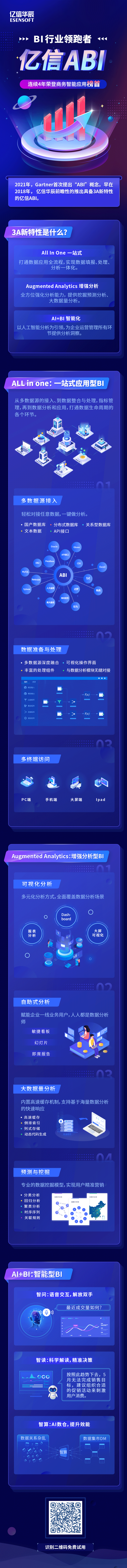 答案當然是肯定的,億信的ABI就是集三代BI為一身,不論是傳統型、敏捷性還是智能型,它都可以勝任,滿足用戶全方位數據分析的需求,并在此基礎上貫徹3A新特性(即一站式、增強分析、智能化),這也與Gartner在2021年發布的魔力象限報告不謀而合。