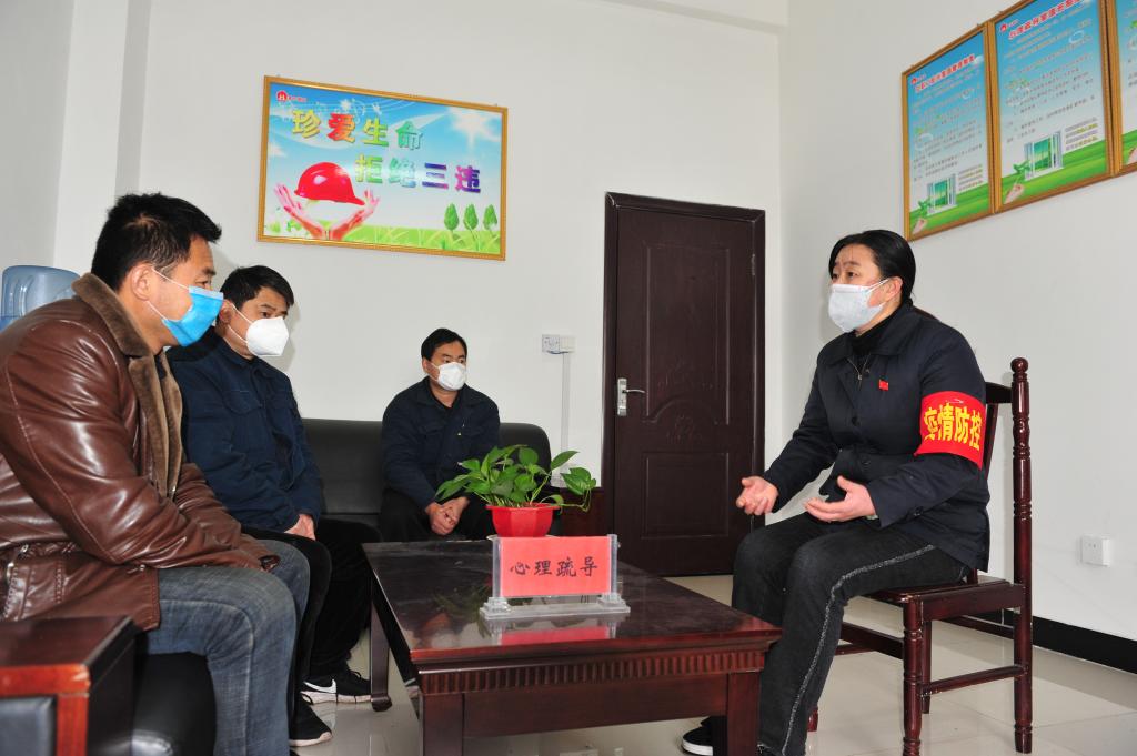礦內(nèi)實行封閉式管理,嚴格控制人員進出,職工食堂缺少人手。全國最美好礦嫂、全國優(yōu)秀協(xié)安員、青東煤業(yè)“李莉心理疏導室”負責人,物業(yè)公司黨員李莉在這一時刻扮演了“雙重角色”,在工作中她對食堂宿舍進行衛(wèi)生消毒,在業(yè)余時間她主動當好職工的“心理疏導師”,緩解在礦職工心理壓力,為職工義務盛飯打菜。“公司每天為職工檢查體溫,嚴禁外來人員進礦,為職工發(fā)放消毒液、洗手液、口罩,嚴格執(zhí)行分餐分浴制度,對于違反規(guī)定的相關責任人按嚴重‘三違’處理,這樣銅墻鐵壁式的管理,我們職工對自己的健康很放心!”李莉信心滿滿地說。