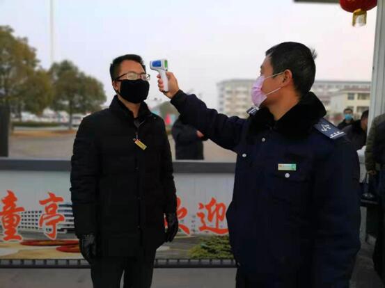 “董部長,請下車測體溫。”物業(yè)分公司部長董昌軍剛把車開到該處機關大門口,就被保衛(wèi)人員楊瑞廷攔下了。“你們頂頭上司你也敢攔?”旁邊有人打趣道。“一車一檢,一人一登記、測體溫,我們是按門衛(wèi)制度辦事,堅決不能漏過一車一人,不是假期值班人員,其他人現(xiàn)在還不讓進呢。”楊瑞廷解釋說。
