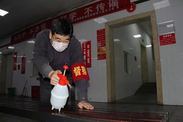 疫情就是命令,防控就是責任。自集團公司全面打響新型冠狀病毒感染的肺炎疫情防控阻擊戰以來,凡光飛就再也沒休息過一天,主動扛起礦井疫情防控消毒工作重任。他每天堅持分三個時段對礦井進行全方位消毒,40多斤一桶的消毒液,每次消毒需要9桶,全面消毒一次大概需要2.5小時,身為共產黨員的他,從不喊苦叫累。面對艱巨防“疫”戰,始終戰斗在防控一線的凡光飛說:“我是一名共產黨員,一名物業后勤人員,我只是做了自己應該做的事。面對疫情只要認真落實集團公司和礦疫情防控部署,大家齊心協力,眾志成城,就一定打贏疫情防控阻擊戰,早日讓礦井全面恢復生產。”(辛玉柱)