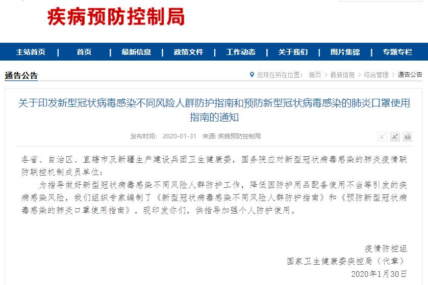 近日,國務院應對新型冠狀病毒感染的肺炎疫情聯防聯控機制(疫情防控組)發布 《關于印發新型冠狀病毒感染不同風險人群防護指南和預防新型冠狀病毒感染的肺炎口罩使用指南的通知》明確說明: