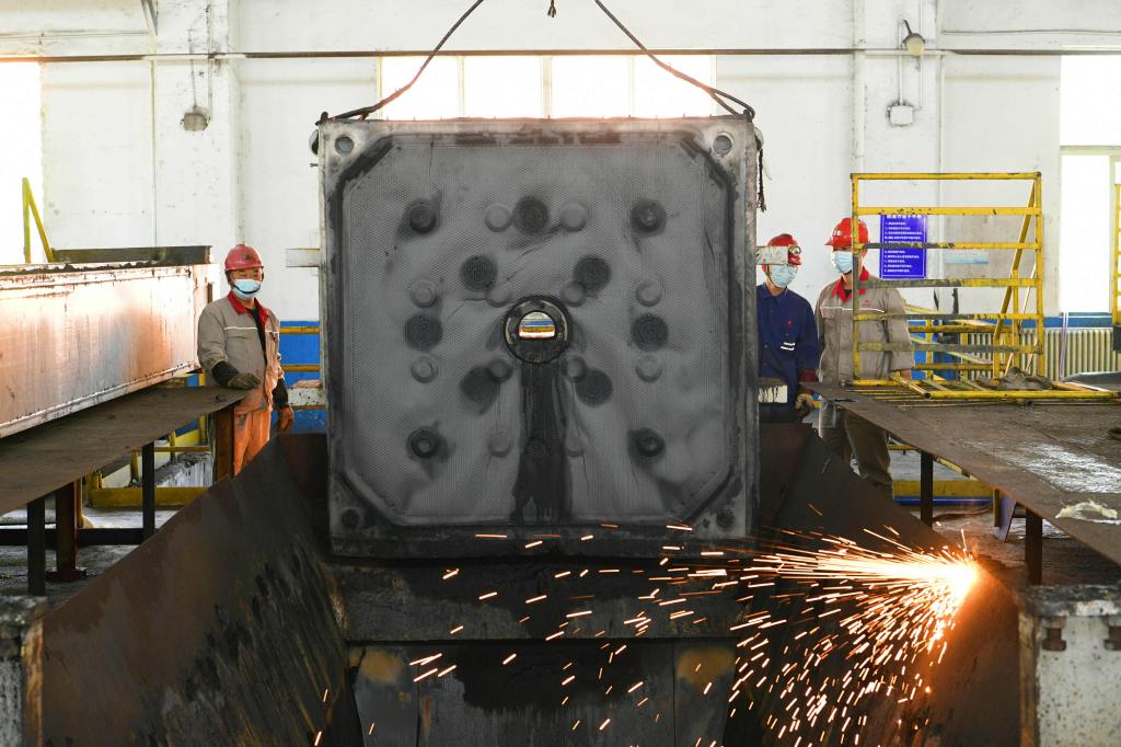在該廠西區(qū)壓濾一、二期17臺(tái)壓濾機(jī)更新改造施工現(xiàn)場,機(jī)電維修工正在緊張地安裝新型壓濾機(jī)、拆除舊設(shè)備,認(rèn)真對各臺(tái)壓濾機(jī)設(shè)備進(jìn)行檢查……2022年集團(tuán)公司“兩會(huì)”提出,要大力推進(jìn)煤泥無量化項(xiàng)目改造。按照集團(tuán)公司工作部署,完成后續(xù)煤泥減量化改造也是臨選廠2022年要完成的“六件大事”之一。目前,該廠正對西區(qū)壓濾一、二期17臺(tái)壓濾機(jī)進(jìn)行更新改造,改造工作時(shí)間緊、任務(wù)重,近期又因封廠管控,施工人員緊張,他們極力克服疫情影響,力爭在工期內(nèi)完成壓濾機(jī)的更換改造任務(wù)。