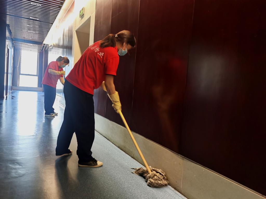 逸園物業(yè)利用假期大樓人員少的契機(jī),組織保潔人員對各樓層進(jìn)行深度保潔。
