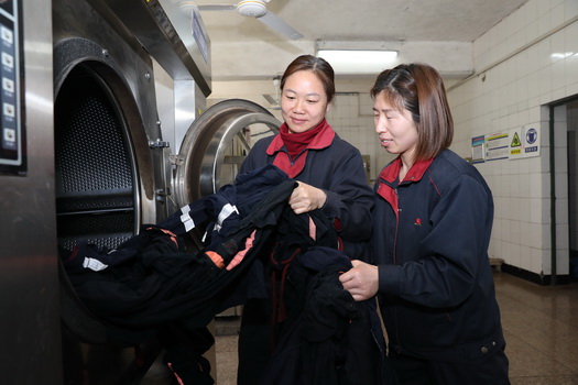 物業(yè)公司女工丁翠玲、趙文芳清洗工作服