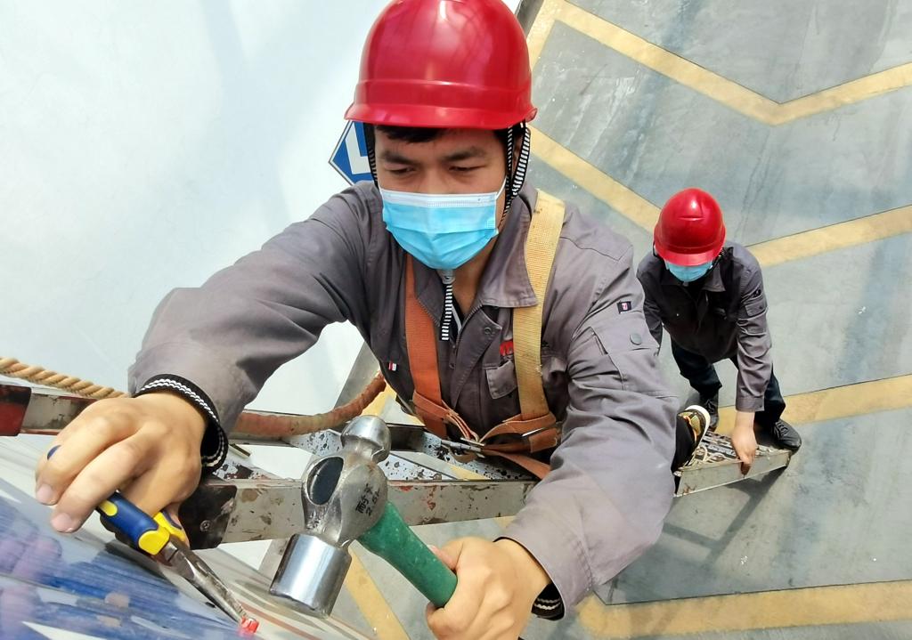 10:50,淮北礦業(yè)集團(tuán)“首席高徒”、物業(yè)分公司機(jī)電運(yùn)營公司職工李冠磊在和工友高少浩處理辦公中心東側(cè)地下車庫損壞的限高牌。作為機(jī)電維修值班,他們要確保“五一”期間大樓各項(xiàng)機(jī)電設(shè)施運(yùn)行完好。