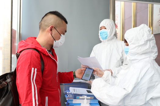 10:15,辦公中心大廳安保人員劉志強(qiáng)檢查進(jìn)入大樓人員行程碼。他說,要守住進(jìn)入大樓的“最后一關(guān)”,保證秩序平穩(wěn)、衛(wèi)生安全。