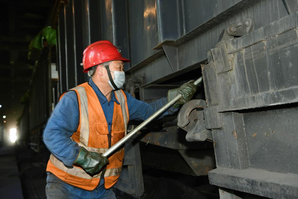 “最近生產(chǎn)任務(wù)很重,4月28日我們4人卸了254車,15000多噸原煤,今天又卸了90多車,明天凌晨估計(jì)還得入廠70列?!蹦樕稀⑸砩险礉M煤灰的班長黃平均站在空車皮上,正在用撬棍鈑緊轉(zhuǎn)盤,關(guān)閉車門。黃平均是一名有著近30年黨齡的退伍軍人,在裝卸崗位上秉承軍人的優(yōu)良傳統(tǒng),退伍不褪色,始終保持著吃苦耐勞、特別能戰(zhàn)斗的軍人作風(fēng)。疫情封閉管理實(shí)行輪崗制,以前4班倒變成現(xiàn)在的兩班倒,裝卸任務(wù)加重,打連勤是常有的事,不愛說話的黃平均總是身先士卒,沖在前、干在先,用實(shí)際行動(dòng)帶動(dòng)著身邊的工友,克服重重困難,圓滿完成了一次次裝卸任務(wù)。