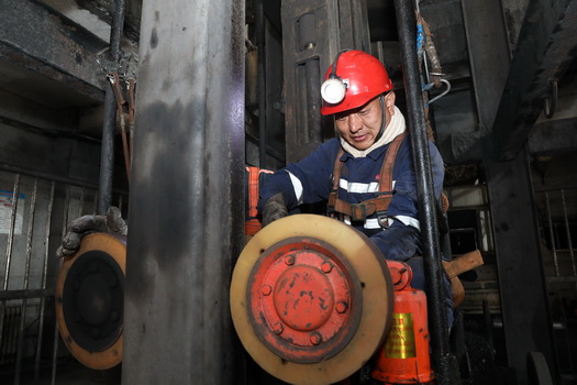保運(yùn)區(qū)職工李剛檢修主井箕斗