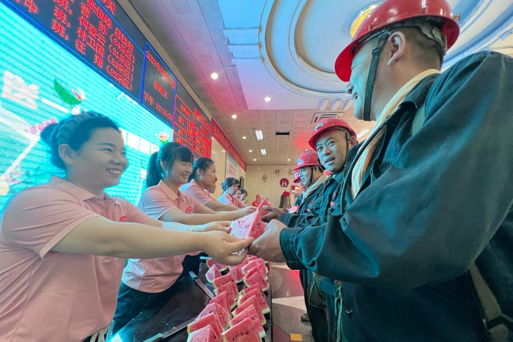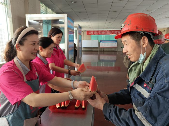 協安員在井口大廳為升、入井的職工師傅們送上西瓜和茶水,叮囑大家做好防暑降溫,牢記安全生產,把夏日清涼送到職工的心坎上。職工們紛紛表示,一定牢記囑托,時刻注意安全,認真履職盡責,確保安全生產。(撰稿:徐燕萍 呂嬋娟 審核:鄧為)