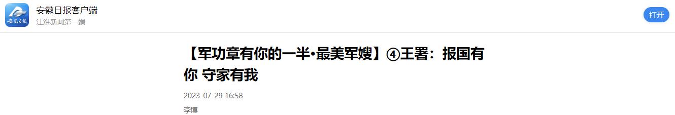 《安徽日?qǐng)?bào)》:最美軍嫂王署——報(bào)國(guó)有你 守家有我
