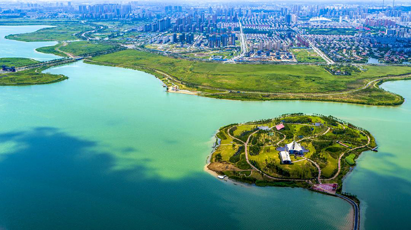 接上父母后,一家人驅(qū)車來到位于淮北市主城區(qū)旁的綠金中央公園,這座占地近4萬畝的濕地,像一幅巨大的畫作在王力眼前鋪開,湖水碧波蕩漾,植被枝繁葉茂,天地間一片綠意盎然。