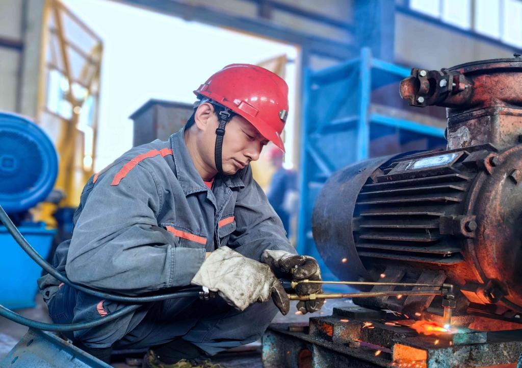 圖為該礦機電科(機廠)職工曹輝正在切割加工材料。