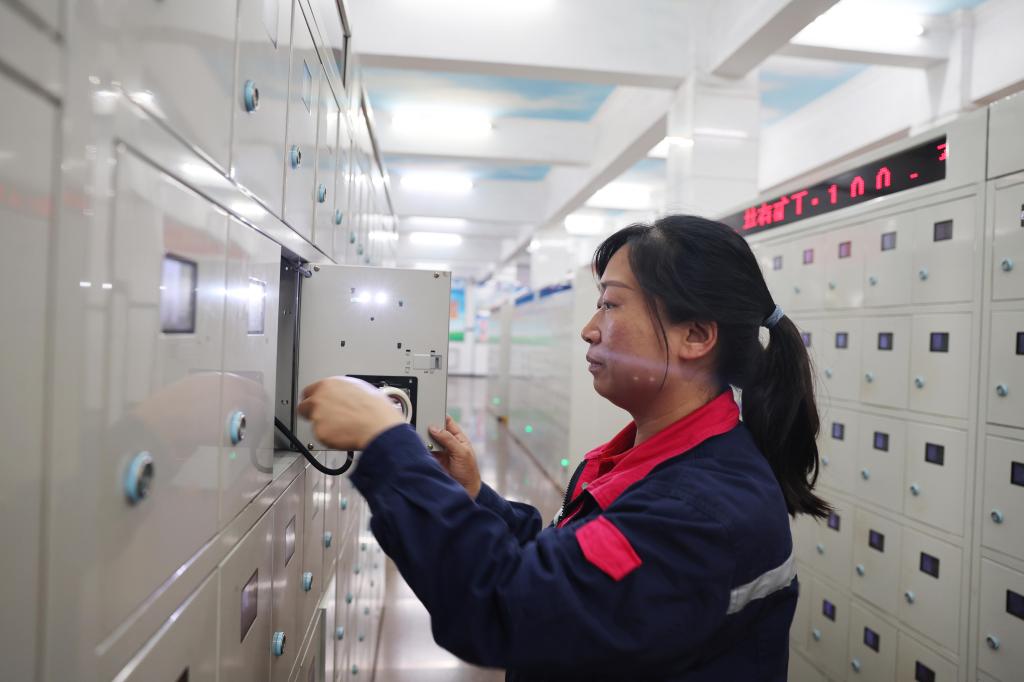 該礦保運區35KV變電女工謝妍妍、張海玲進行崗位操作。