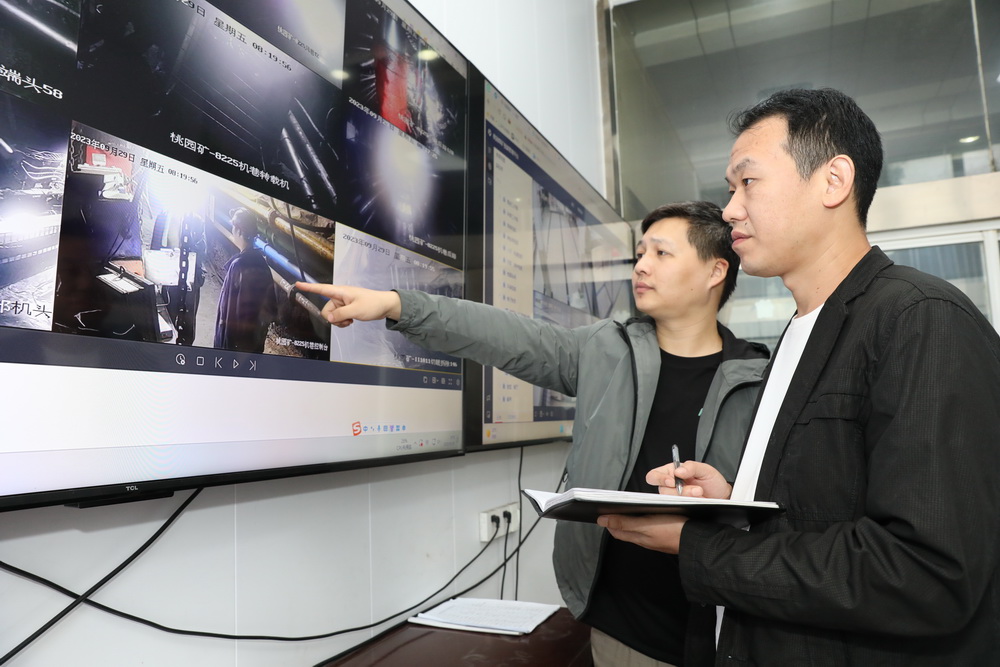 在調度指揮中心,季躍、郭路路兩人正在線上比對監測數據。“五一”期間,為讓工友享受假期快樂時光,他們放棄輪休的機會,選擇堅守在崗,全天候監測各類安全數據變化,用行動守護礦井安全。